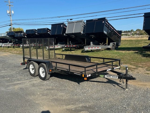 Rear Ramp Gate, Brakes on All Four, Deck 75″ x 14′, Rear Gate 75″ x 48″, 11″ Sides, 3500lb Leaf Spring Axles, Tires 20575R15, 2-5/16″ Coupler, Dual Axle, 15″ Tires, Top Wind Jack, 4 Tie Down Points, No Warranty