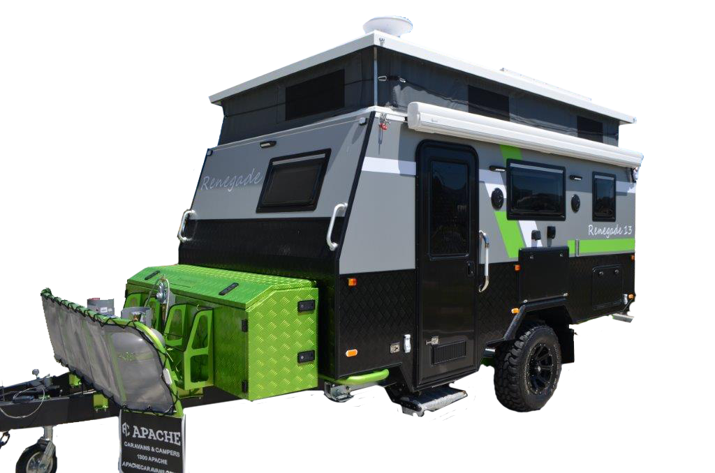 Introducing the Renegade 13, a compact yet mighty off-road caravan designed for adventurers seeking versatility and durability in a smaller package. This 13-foot marvel is the ultimate choice for those who value ruggedness without sacrificing comfort and style.