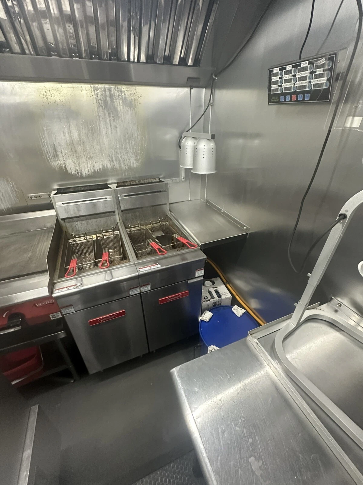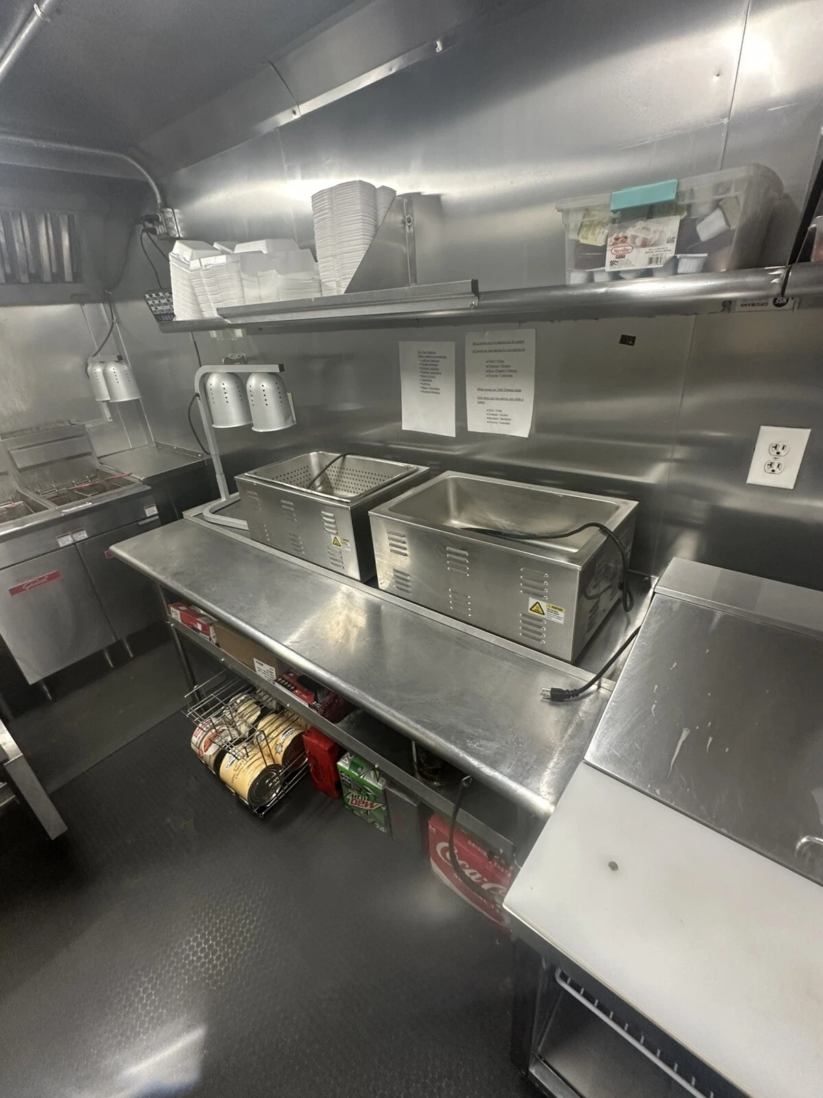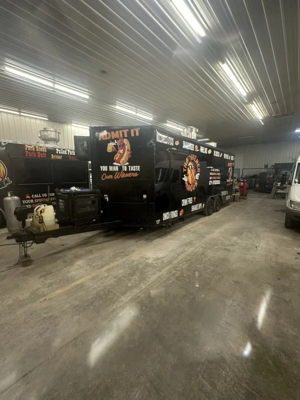 2024 empire concession trailer 8 foot and 4 foot hood 1 upright commercial freezer 1 under counter commercial freezer 1 2 door sliding door cooler 1 single door cooler prep table 2 40 pound fryers 1 48 inch 4 burner flat top 2 steam pans also has a carnival king funnel cake fryer 4 100 pound propane tanks has a commercial nugget ice maker with water dispenser ice maker has its own 40 gallon tank also has a 16000 watt quiet generator there was no expense spared on this build this unit is turn key and is currently working can be bought with name