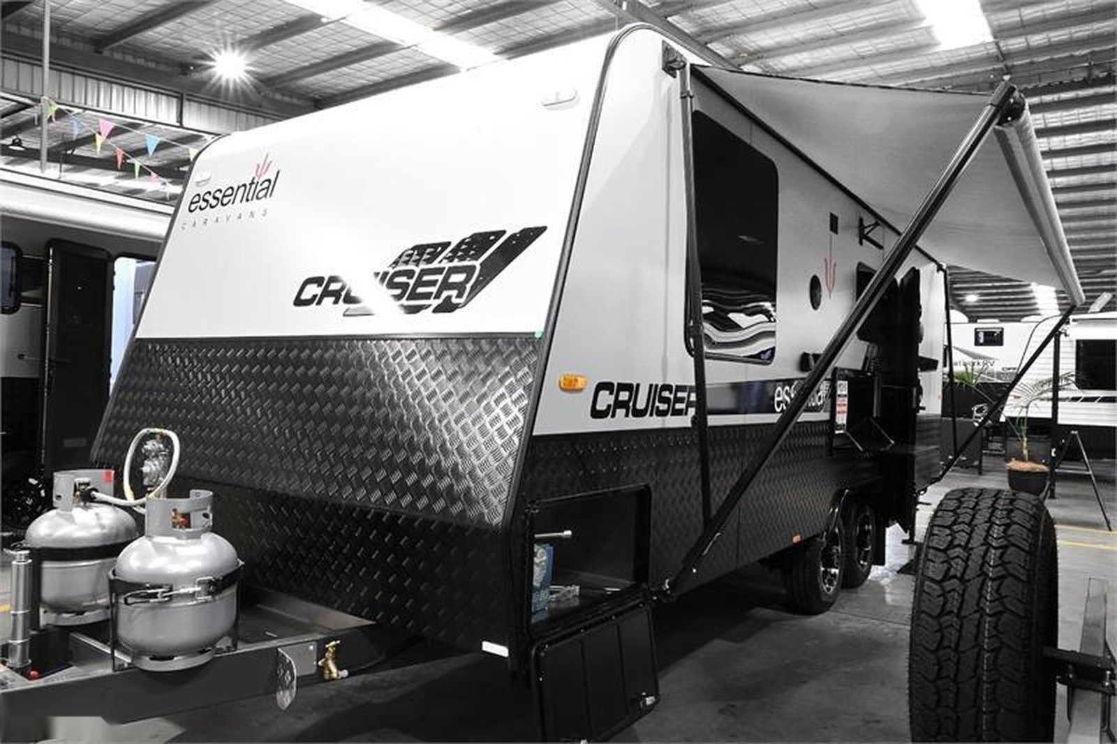The exciting new 2024 Essential Cruiser in layout V6, 21foot with Cafe lounge. Now standard with Lithium battery and smooth panel Aluminium Composite exterior walls and Insulated floor and roof.
