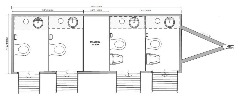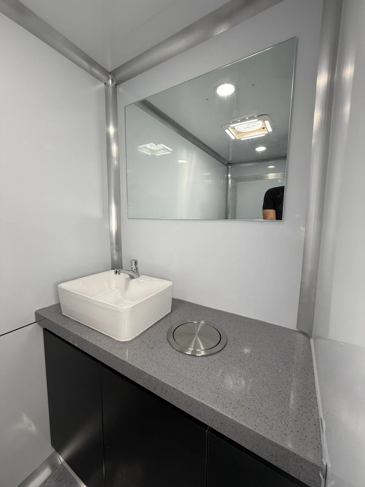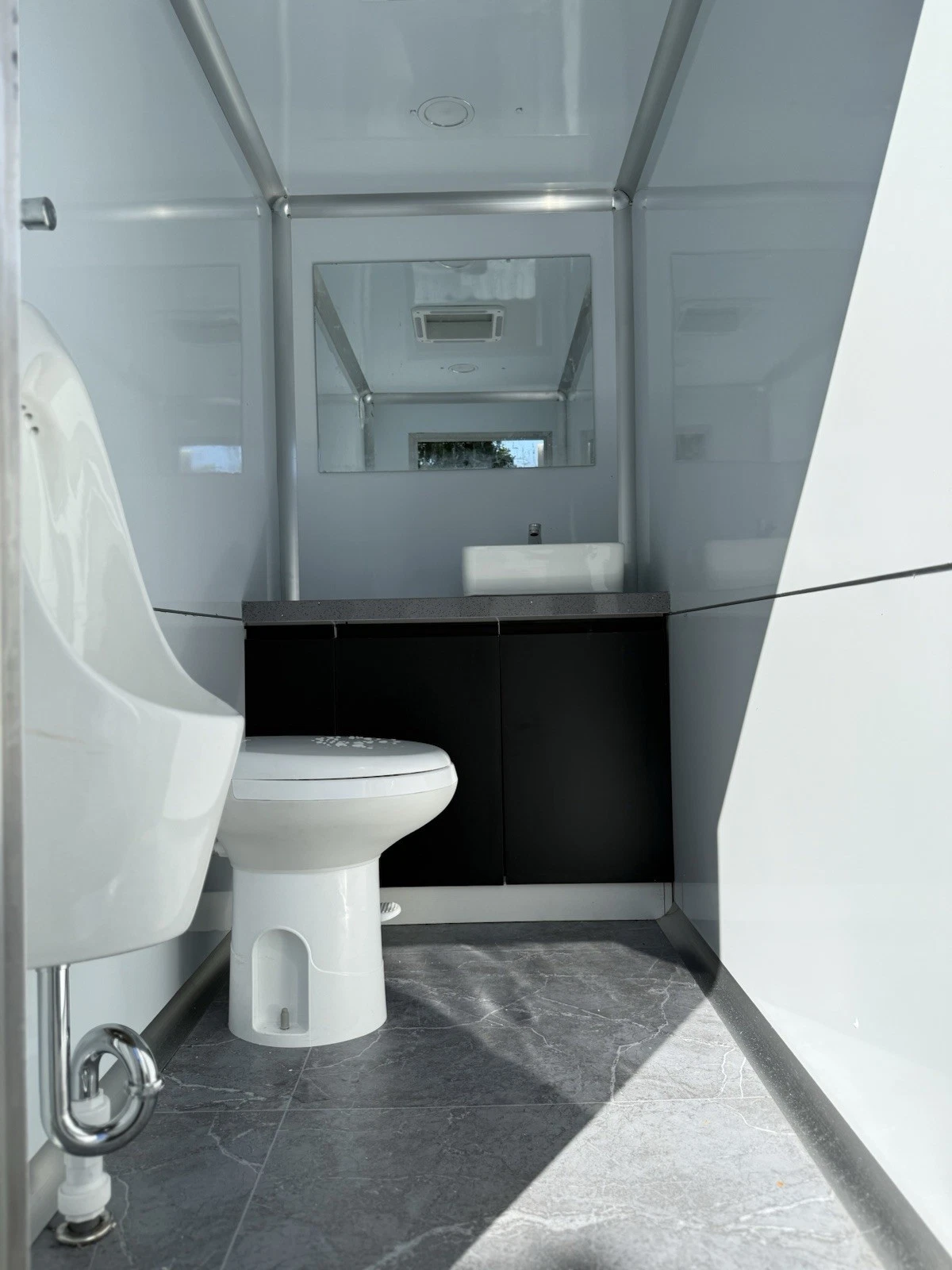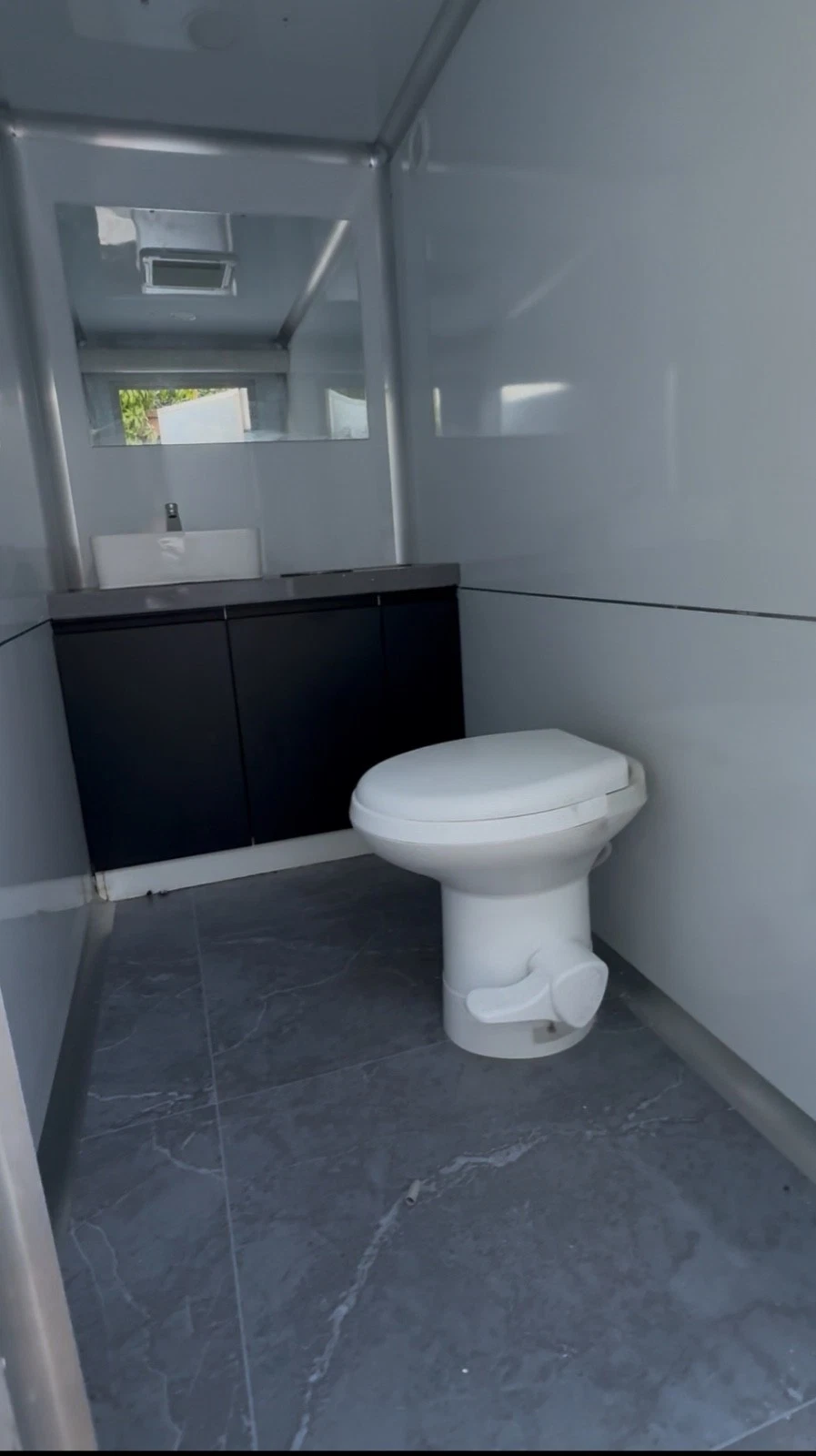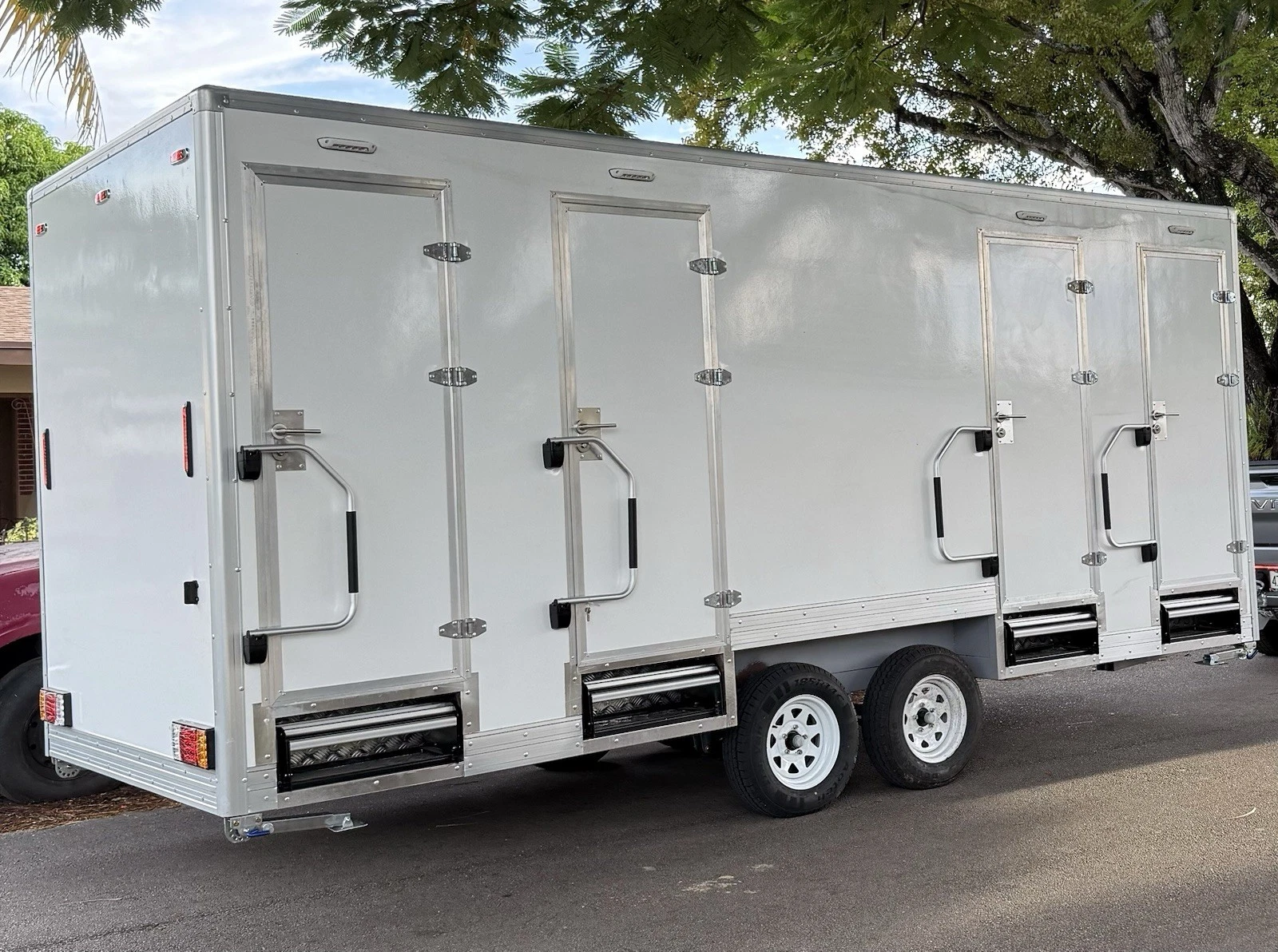 4-Stall Luxury Restroom Trailer – All With Toilets, Plus Urinals in Male Stalls