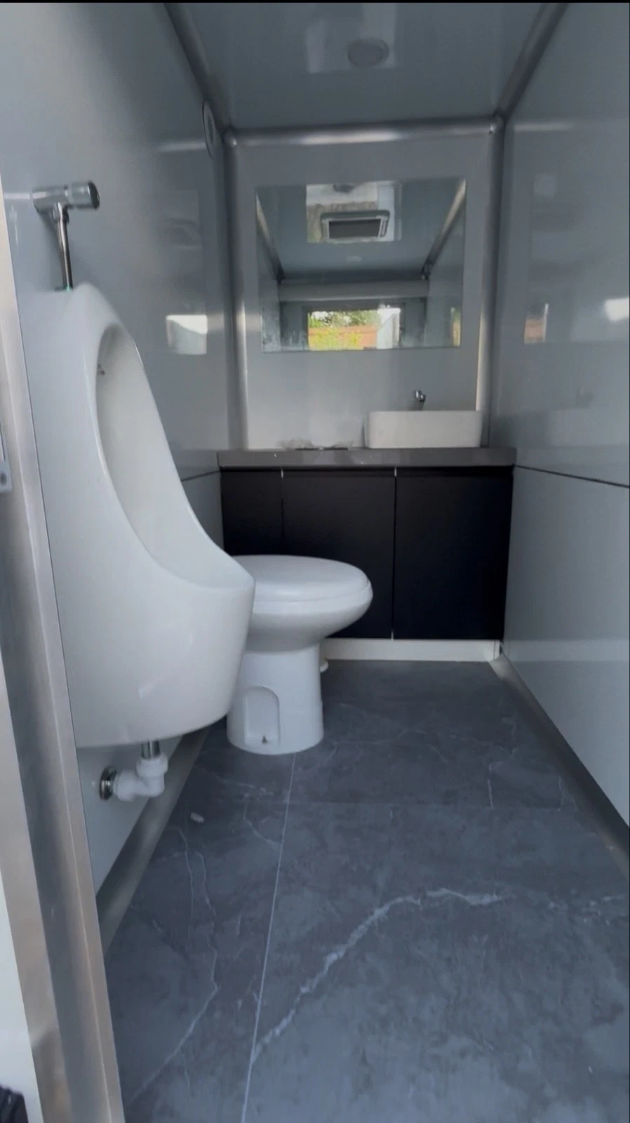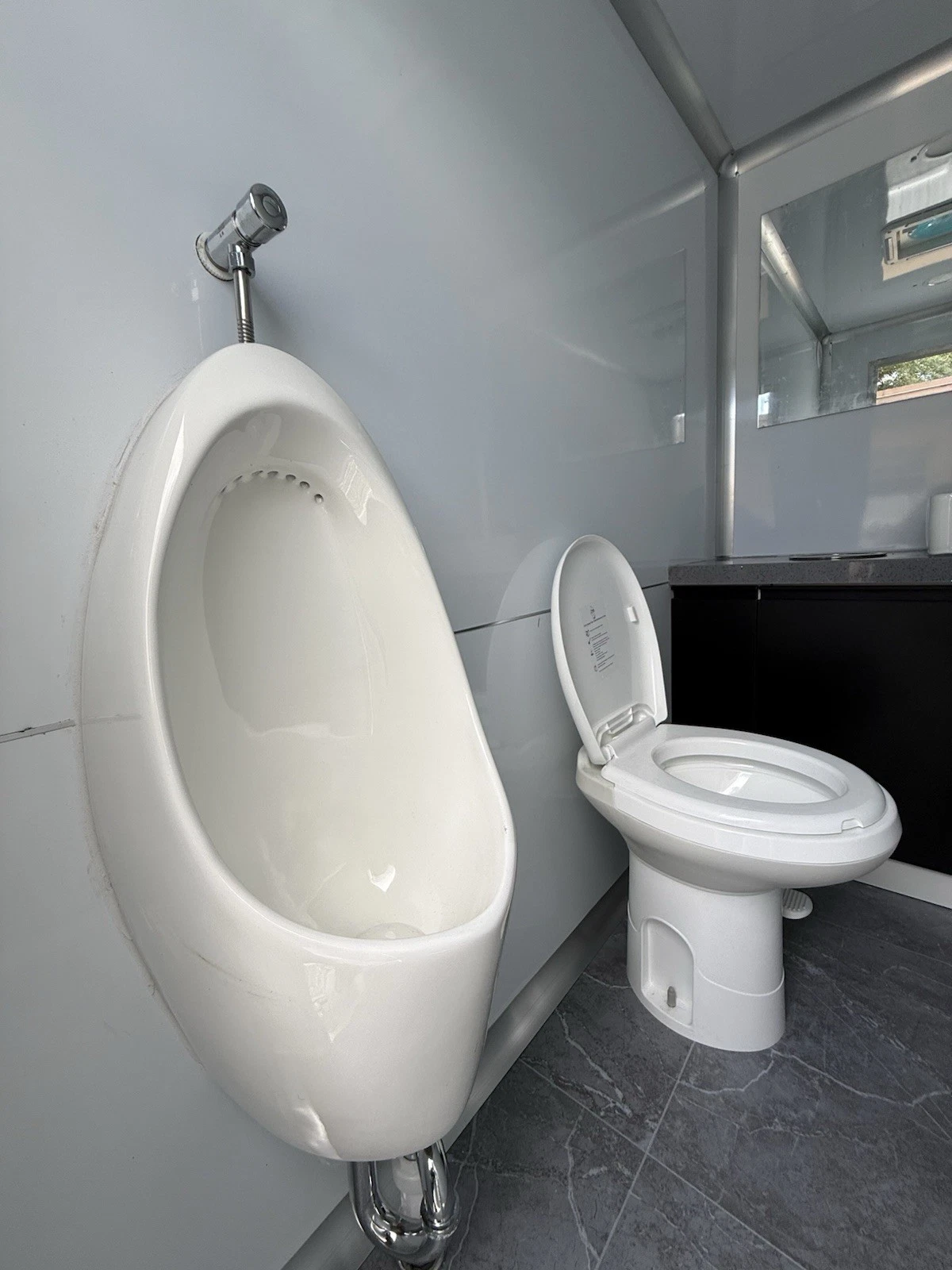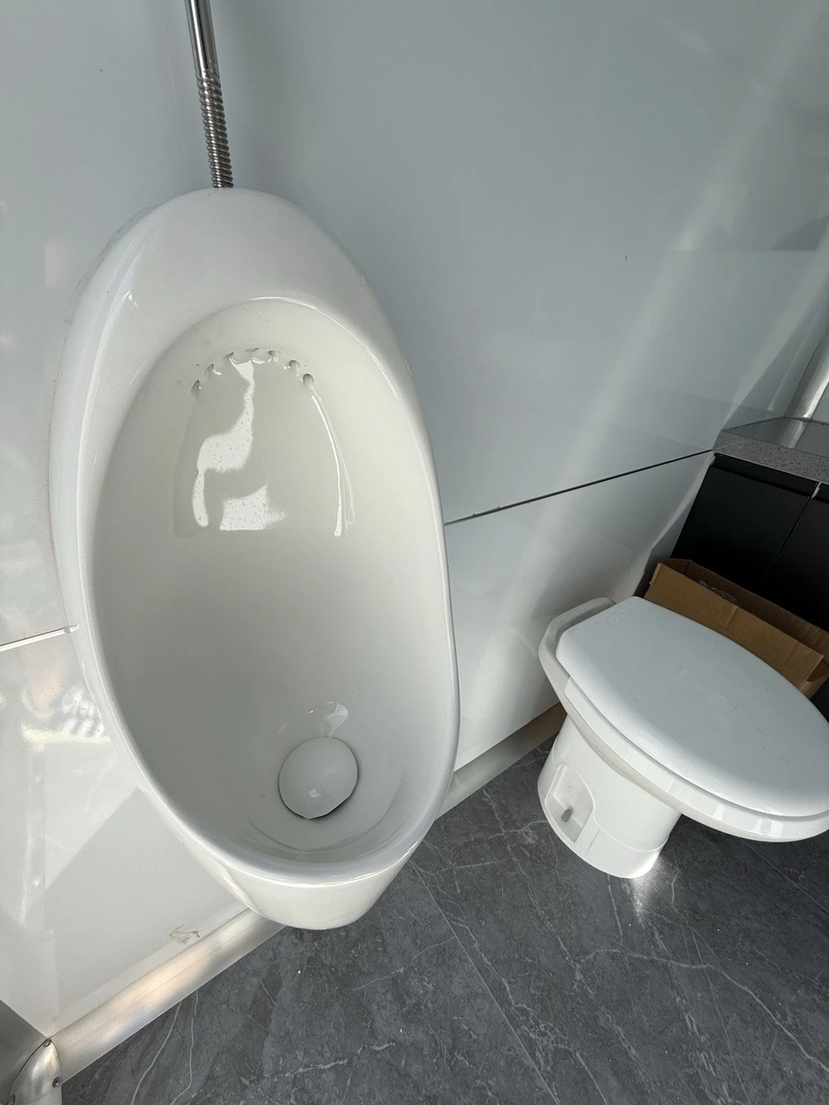 ✔️ 2 male-designated stalls include both a toilet and a urinal