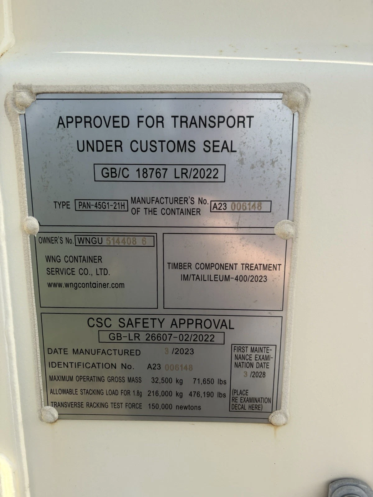 40ft Container 8.6ft Ceilings 8ft Wide like New Never Used Only For Storage 1yr. Condition is Used